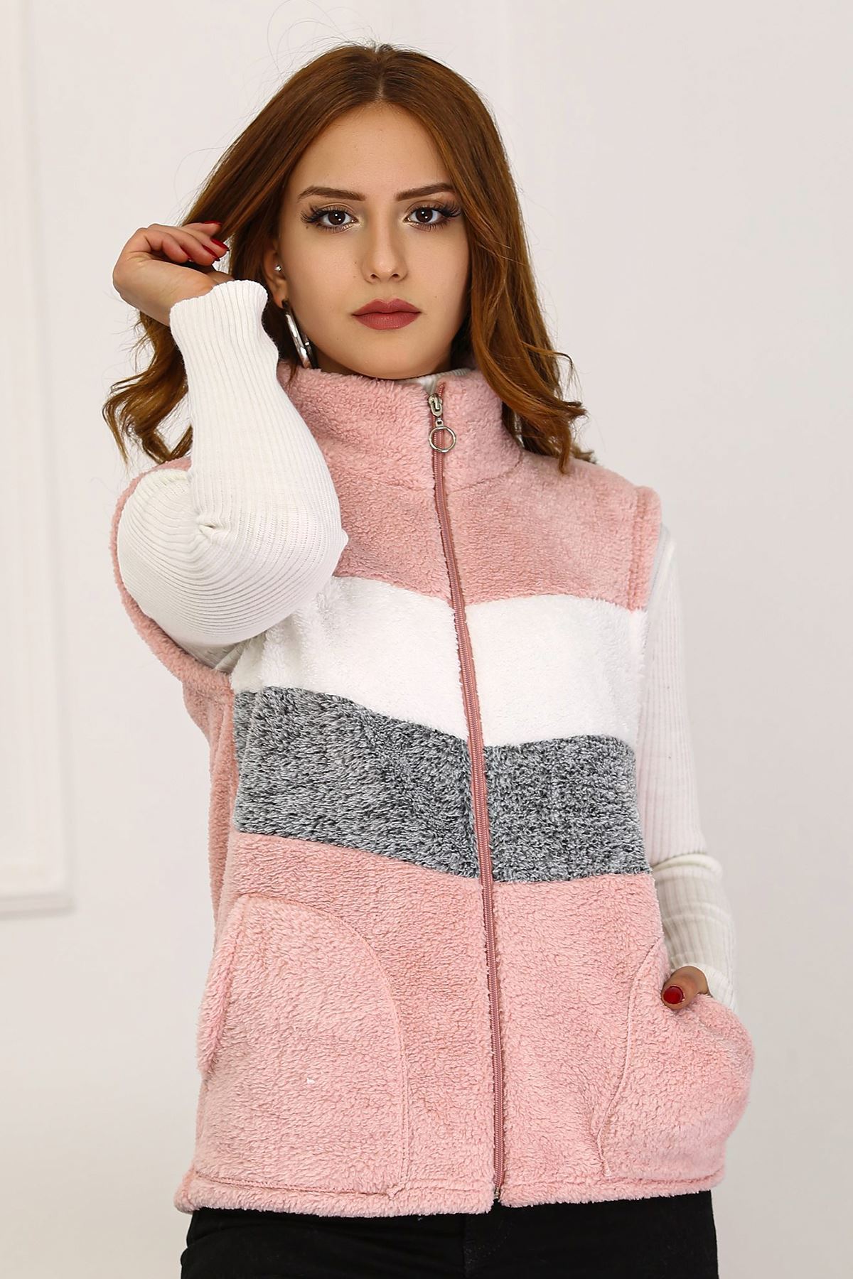 Fermuarlı Peluş Yelek Pembebeyaz - 4510.107.