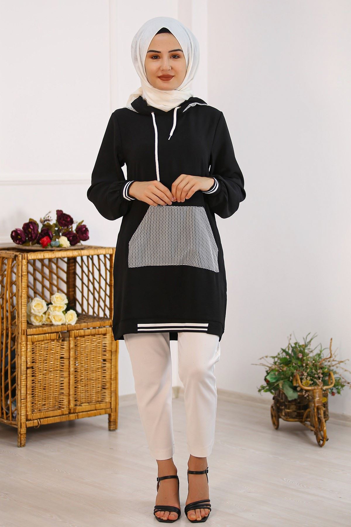 File Detaylı Kapşonlu Tunik Siyah - 4037.1289. - y.s