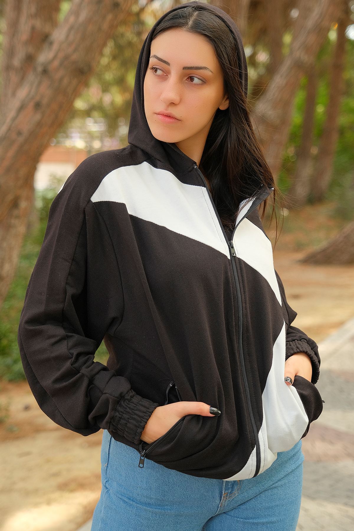 Kapşonlu Fermuarlı Sweat Siyahbeyaz - 8078.1210.