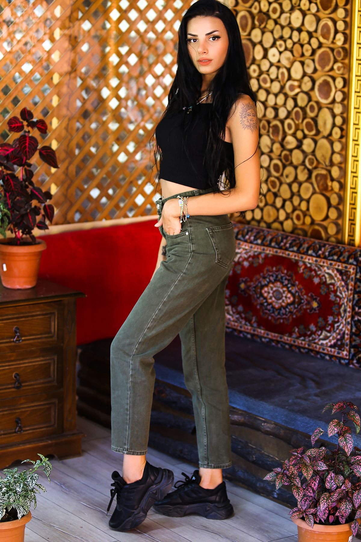 Kar Yıkamalı Mom Pantolon Koyuyeşil - 1025.392. - k.p