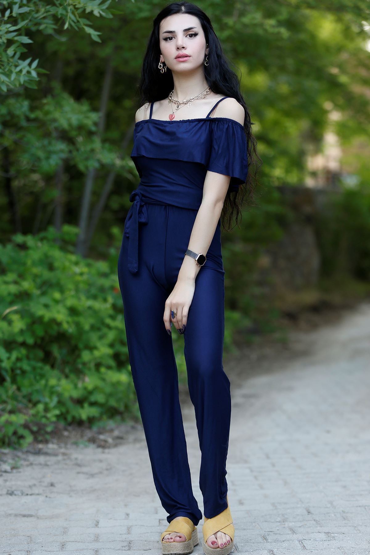 Kayık Yaka Tulum Lacivert - 4546.716.