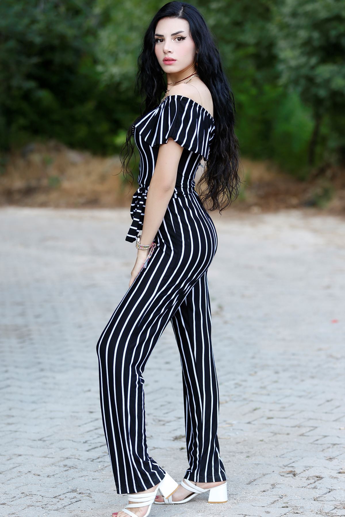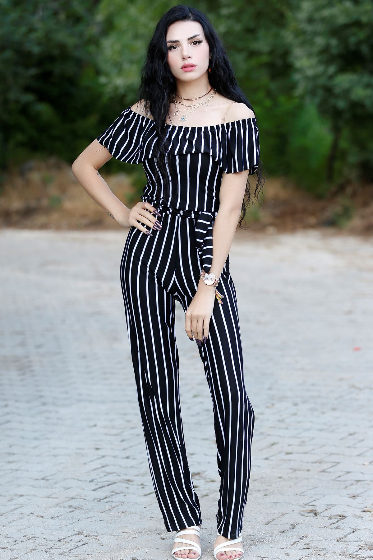 Kayık Yaka Tulum Siyahbeyaz - 4546.716.