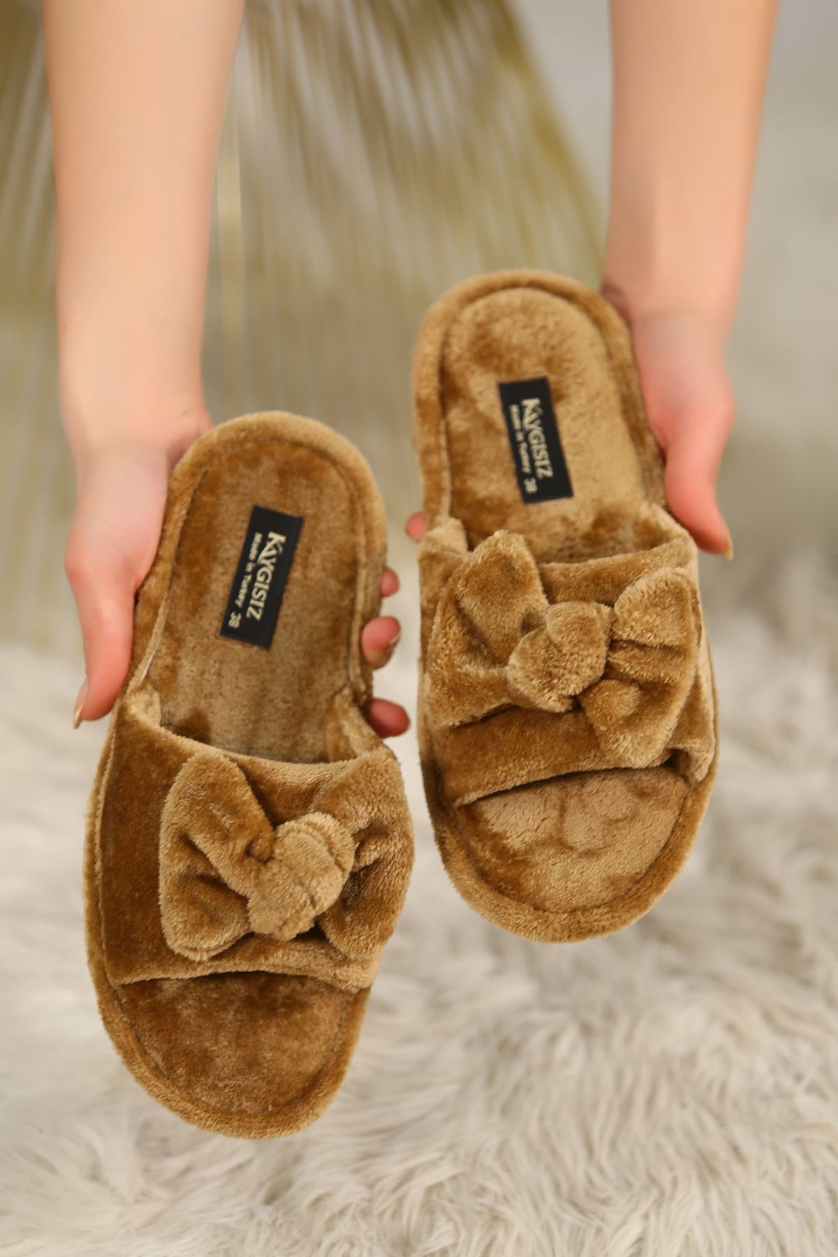 Kurdaleli Peluş Terlik Açıkkahve - 4556.264.