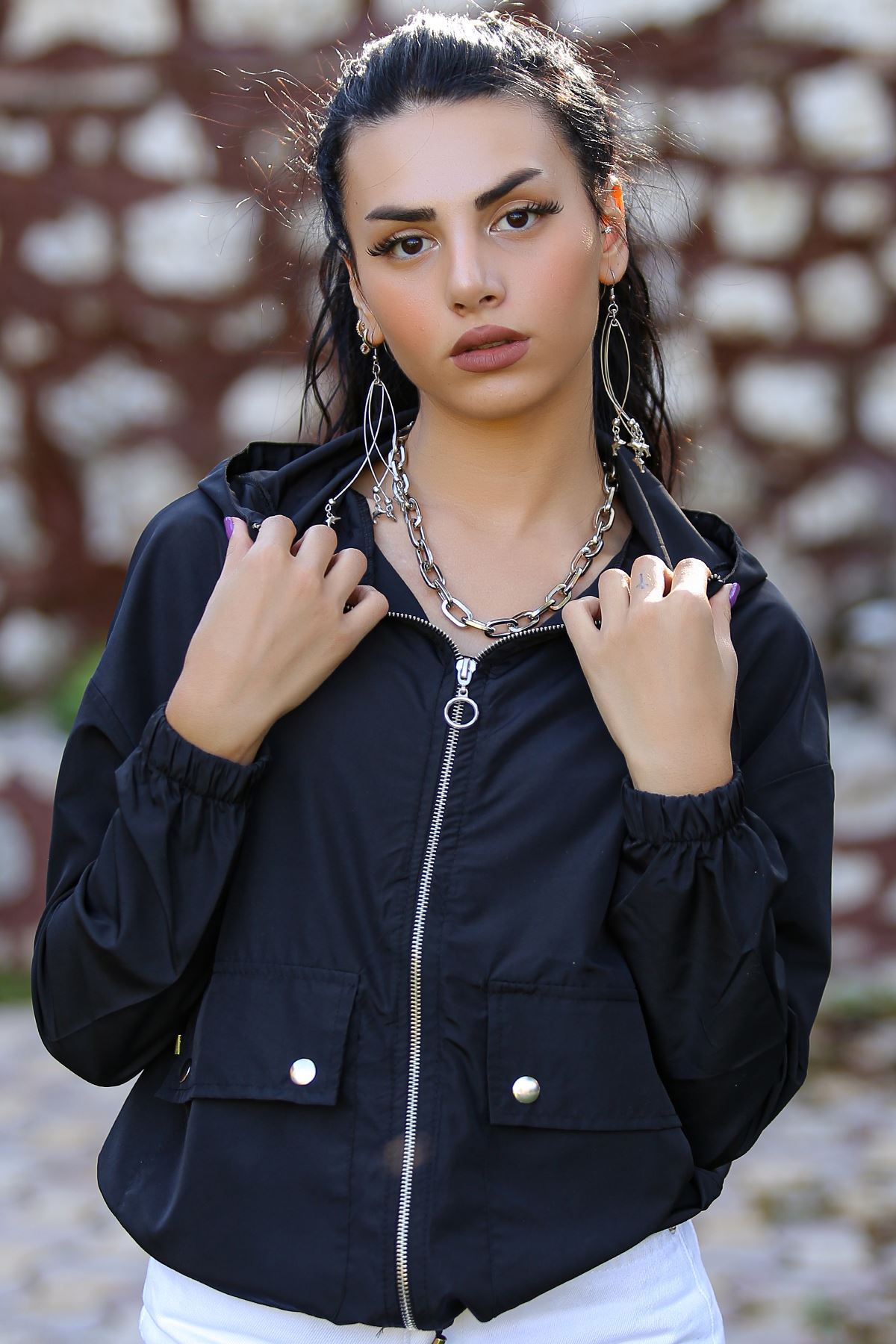 Kapşonlu Fermuarlı Mont Kiremit - 4442.107.
