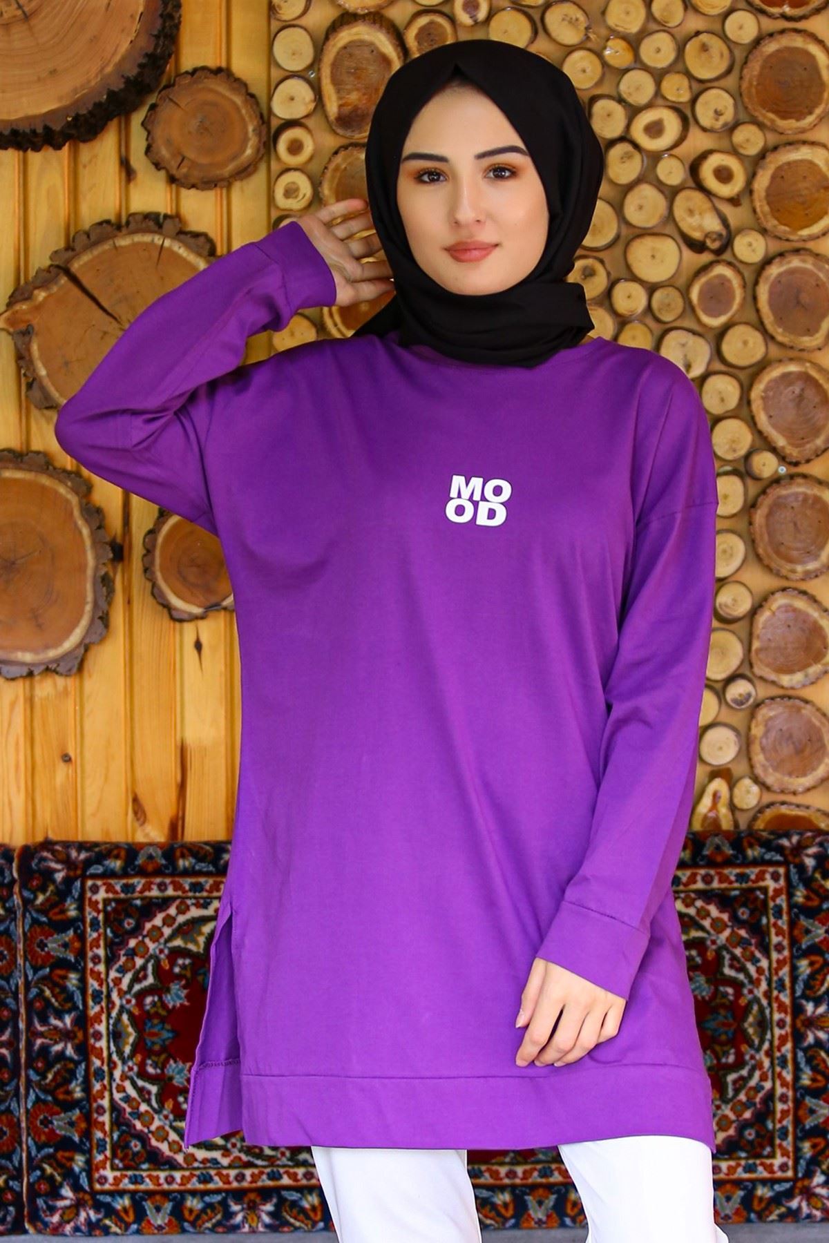 Mood Baskı Yırtmaçlı Tunik Mor - 4359.156.