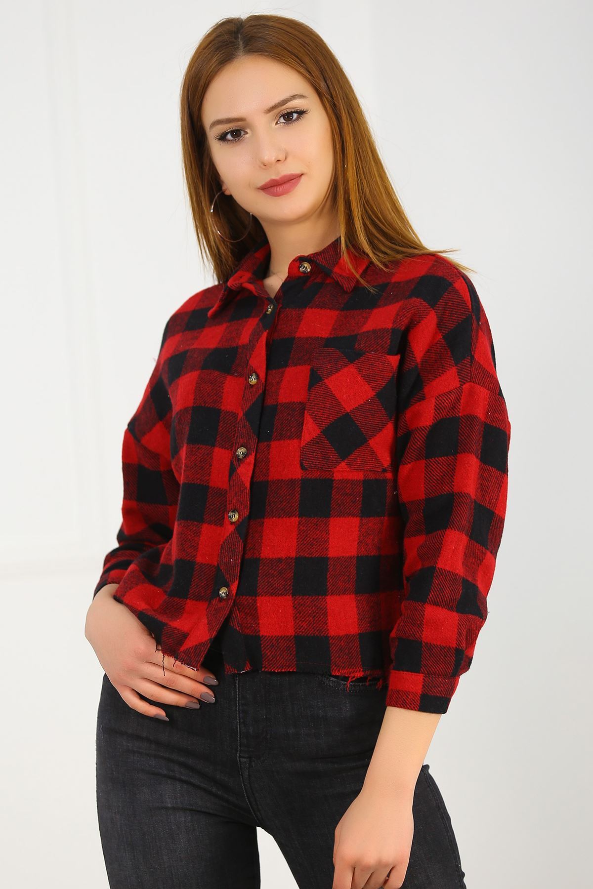 Saçaklı Oduncu Gömlek Kırmızısiyah - 20043.101.