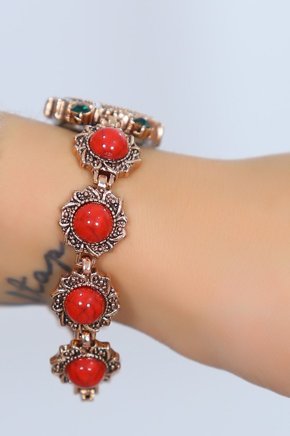 Taş İşlemeli Otantik Saat Kırmızı - 4491.1303.